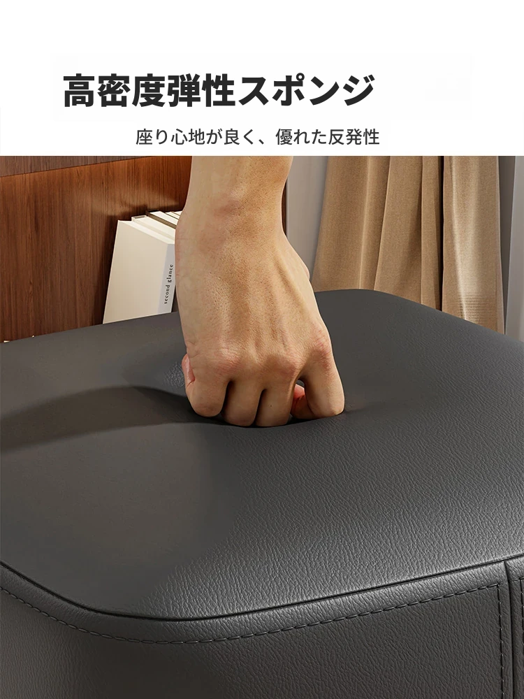 モダンでシンプルな家庭用スツール、ふわふわの布製で快適な足置き、背もたれ付きの簡易デザイン。リビングや玄関での靴を脱ぐ時にぴったり!おしゃれな空間を演出します。