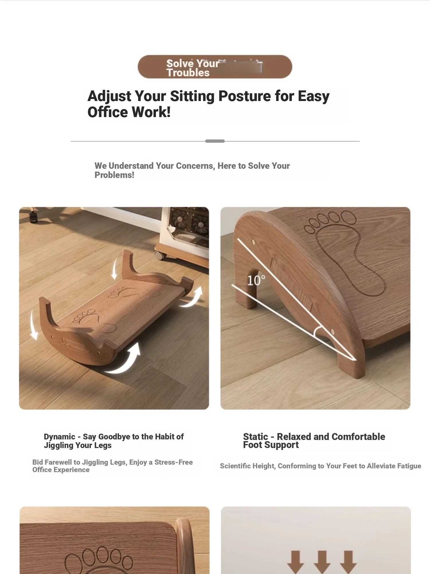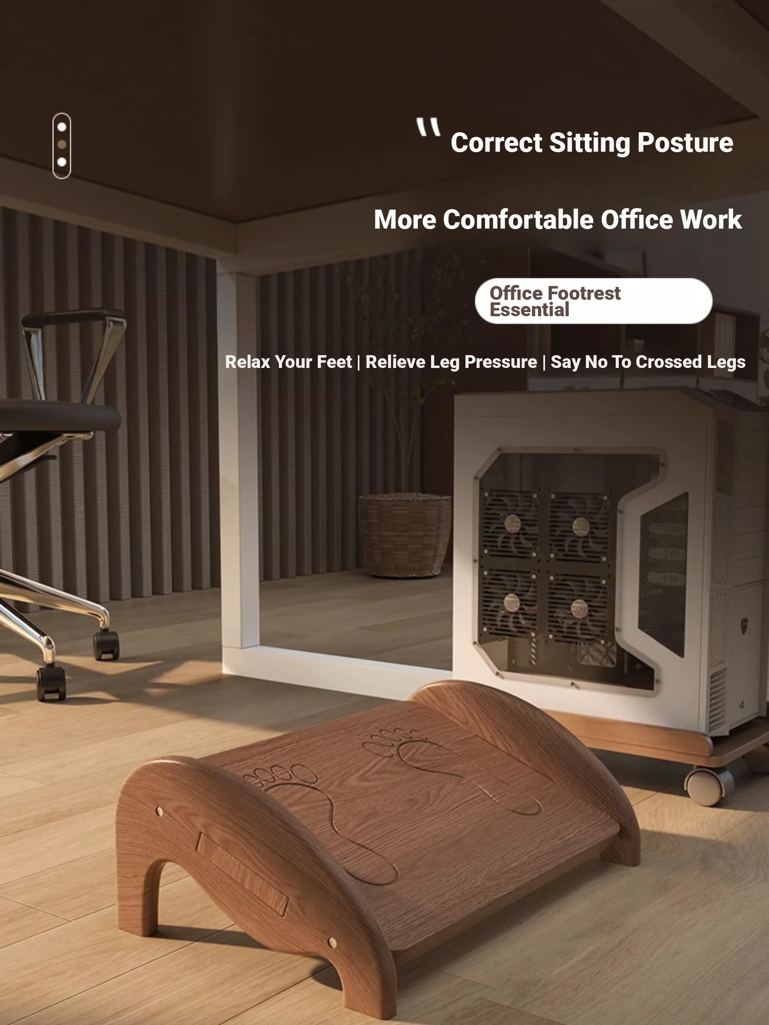 Solid Wood Office Footrest - Anti-Cross-Leg Support Stool, Ergonomic Under-Desk Foot Pedal for Comfortable Seating, Ideal for Preventing Leg Fatigue and Promoting Healthy Posture.