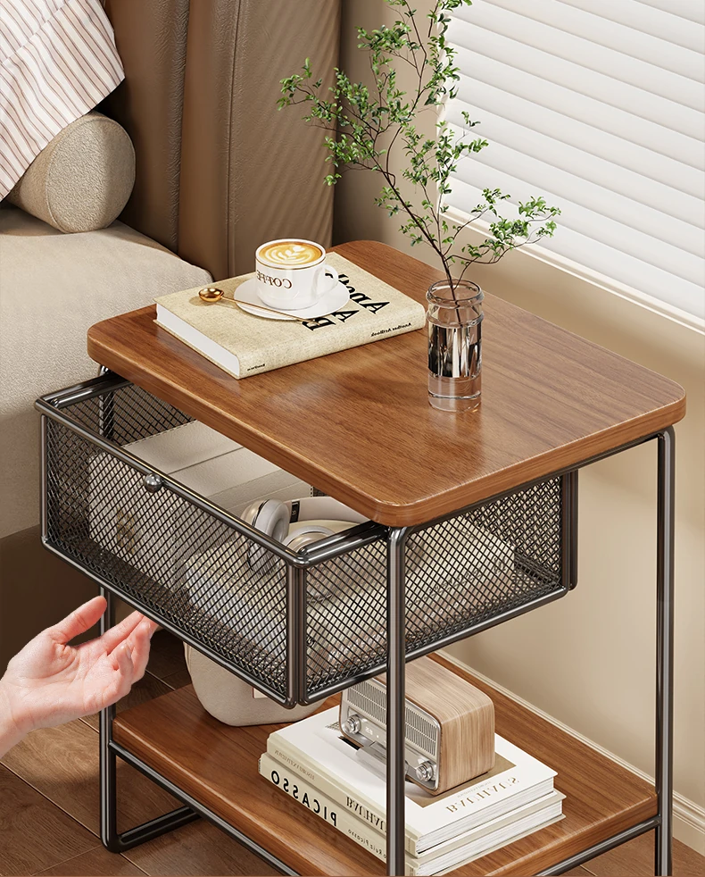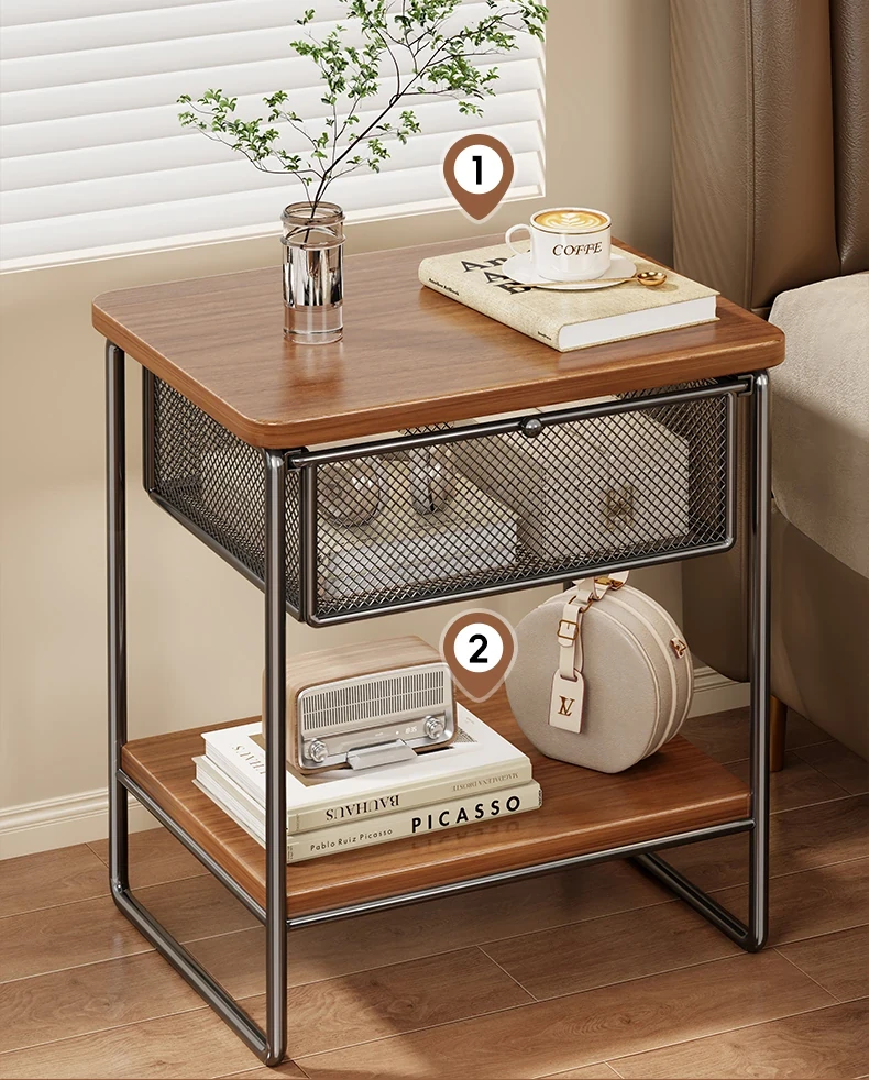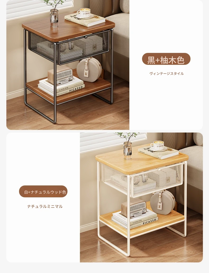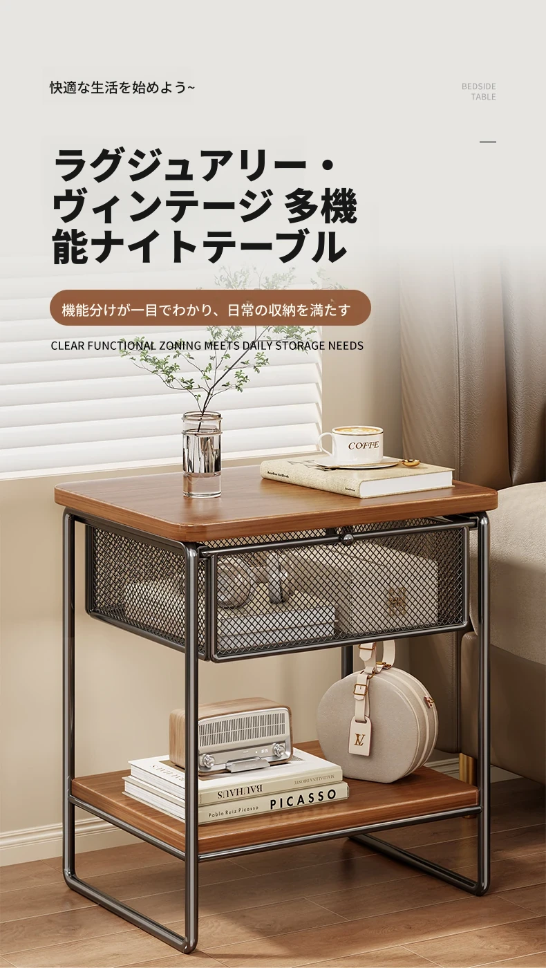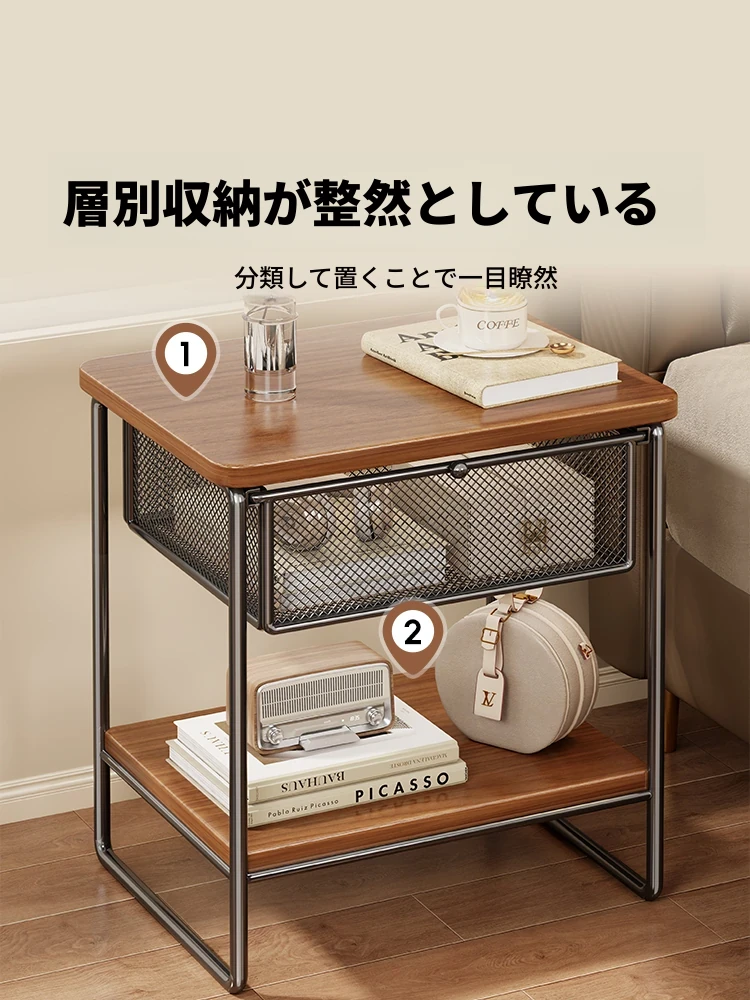 家庭用ベッドサイドキャビネット - 小型収納、見える引き出し付き!ミニベッドサイド収納ラックで、あなたの寝室をスッキリ整理。便利なアイテムで、スペースを有効活用しましょう!